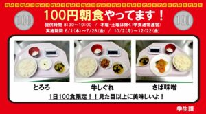 「大学名+100円朝食」